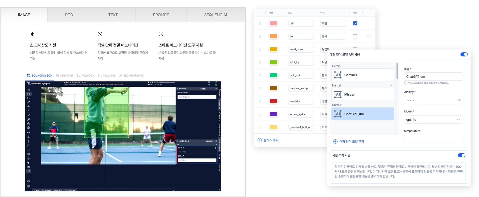 이미지/오디오/비디오/텍스트/프롬프트/PCD 데이터의 라벨링을 지원하여 학습용 데이터를 효율적으로 구축 가능