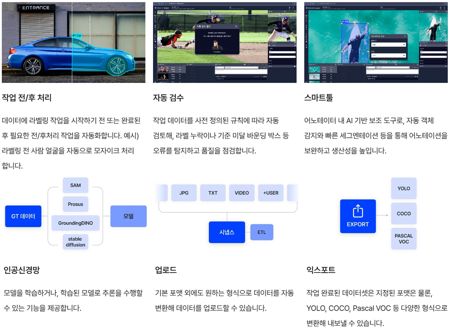 다양한 형식으로 데이터를 내보내 모델 학습 및 활용을 용이하게 함