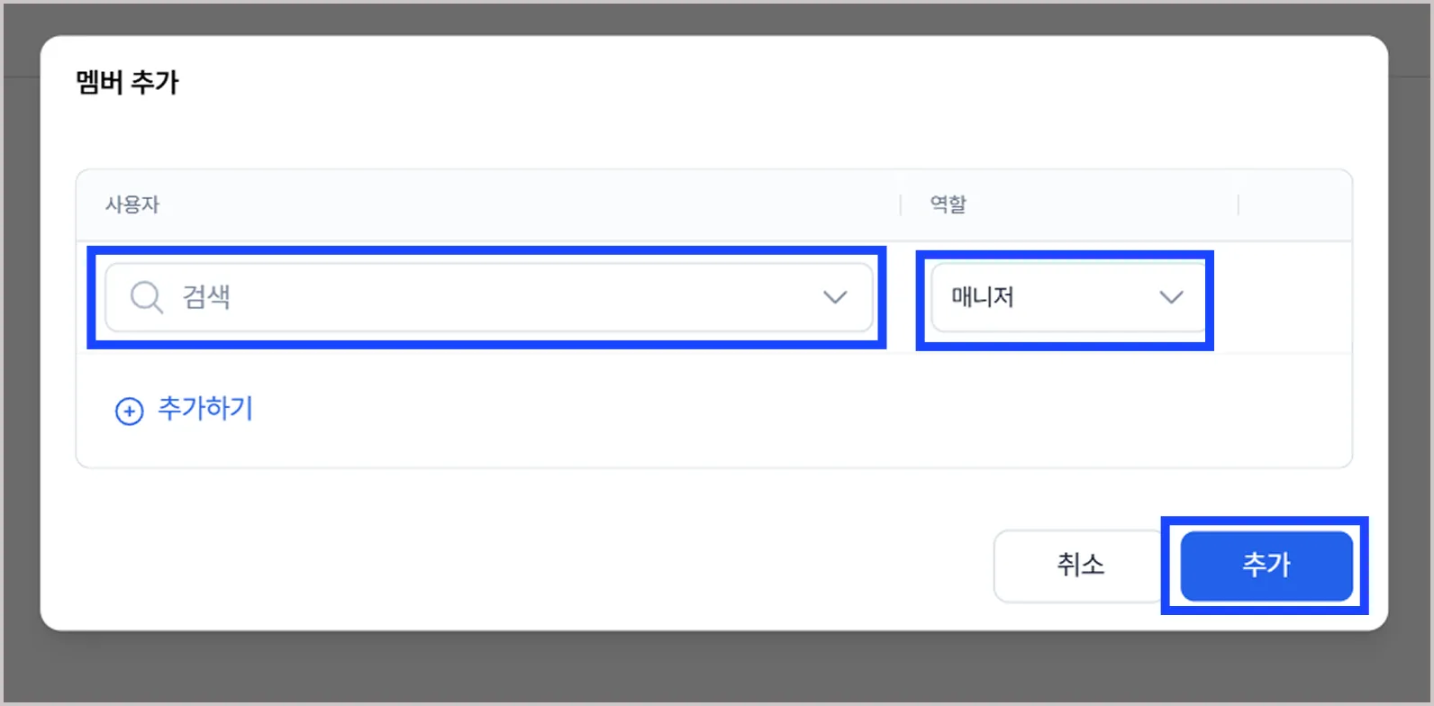 ① 사용자 초대 및 역할을 설정합니다.