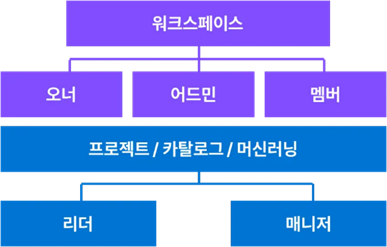 시냅스는 사용자의 편의와 MLOps 전반에 필요한 모듈(프로젝트/카탈로그/실험 등)의 보안 측면을 고려하여 크게 워크스페이스 수준과 워크스페이스 하위 수준으로 나누어 권한을 부여하였습니다.